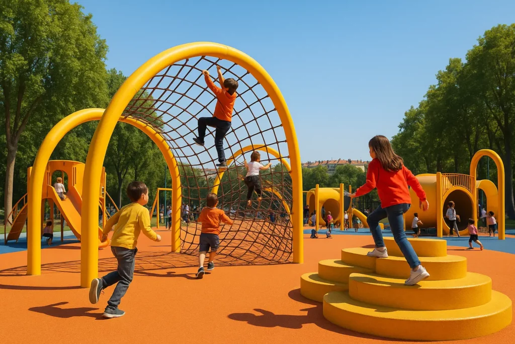 - Parcours d’aventure : filets, ponts suspendus et tunnels pour tester son équilibre.